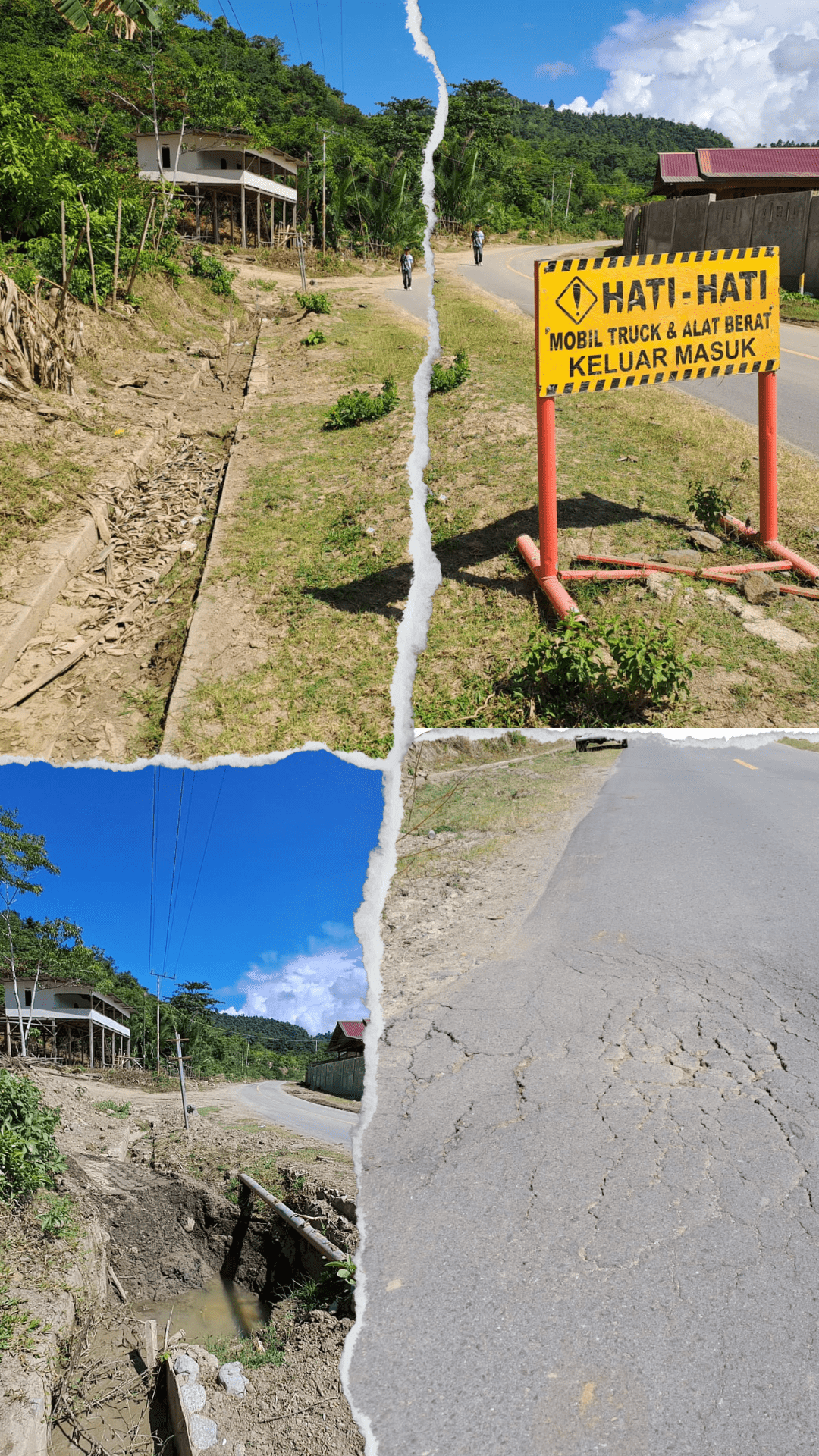 PosRakyat – Saluran drainase jalan nasional di Desa Kapas, Kecamatan Dako Pamean, Kabupaten Tolitoli, mengalami kerusakan parah akibat aktivitas perusahaan tambak udang PT Inti Karya Vaname. Drainase tersebut tersumbat tanah dan menyebabkan air meluap ke badan jalan, sehingga mengakibatkan kerusakan pada aspal jalan nasional.