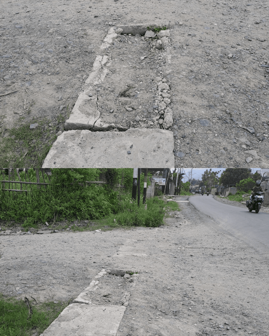 “Umumnya di pertigaan itu menggunakan box culvert, tapi ini malah menggunakan saluran u-ditch yang dipasangkan penutup untuk bisa di lewati kendaraan. Setahu kami saluran u-dicth tidak bisa menahan beban kendaraan yang melintas di atasnya, karena struktur u-ditch itu tidak di rancang untuk menahan tekanan beban seperti halnya box culvert,” kata Gun salah seorang masyarakat yang sering melintas di jalan tersebut.